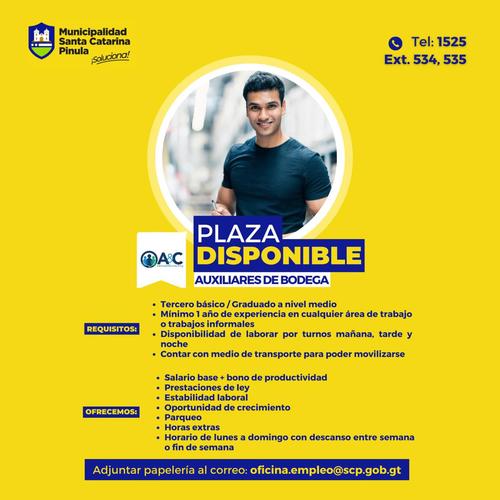 A través de redes sociales, la Municipalidad de Santa Catarina Pinula dio a conocer una convocatoria de múltiples plazas laborales para los guatemaltecos.