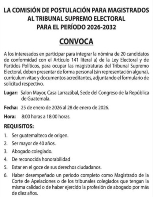 Te interesa: Postuladora TSE: publican convocatoria para aspirantes y estos son los requisitos
