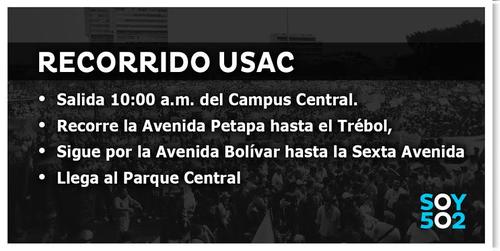 Aquí el recorrido de la Universida de San Carlos de Guatemala que partirá del Campus Central desde las 10 de la mañana.
