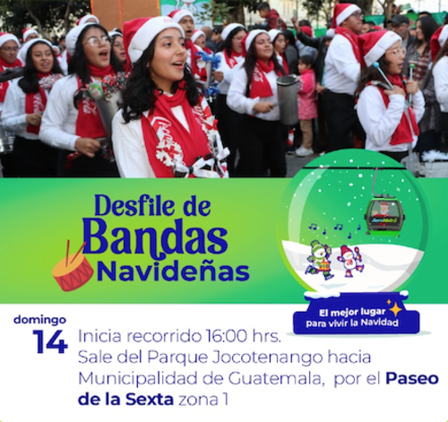 Este domingo 14 de diciembre se realizará la 13a. edición del Desfile de Bandas Navideñas, organizado por la Municipalidad de Guatemala.