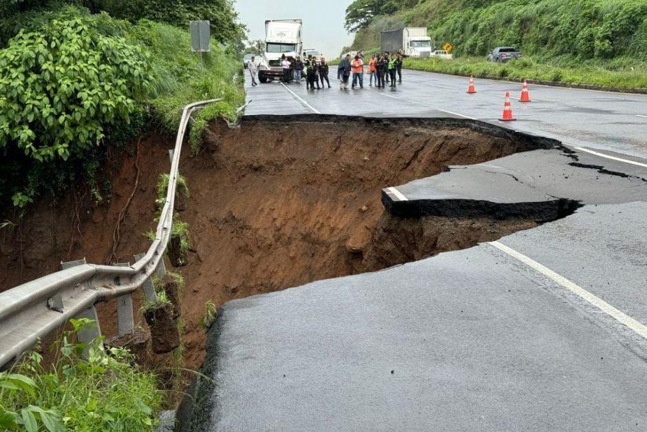 El tramo de la Autopista Palín-Escuintla "ha sufrido un daño severo, debido a un hundimiento causado por tubería de drenajes tapada", detalló el Ministerio de Comunicaciones, Infraestructura y Vivienda (CIV).