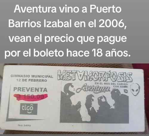 "Aventura vino a Puerto Barrios Izabal en 2006, vean el precio que pagué por el boleto hace 18 años", escribió el usuario Will Cerna en su cuenta de TikTok.