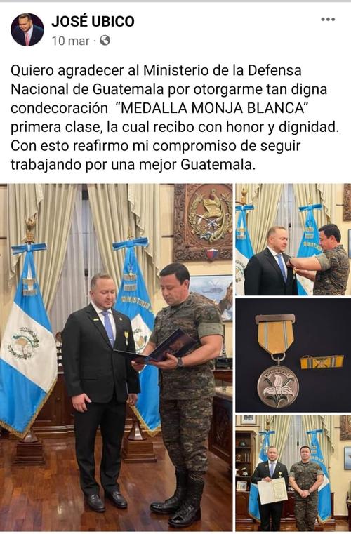 En marzo de 2022, el Ejército de Guatemala confirió la medalla Monja Blanca al entonces diputado y ahora confeso responsable de actividades del narcotráfico, José Armando Ubico Aguilar.