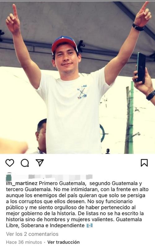 Tras oficializarse la sanción, Miguel Martínez publicó un mensaje en su cuenta de Instragram, en el cual hace ver que no se siente intimidado y que, por el contrario, se siente orgullo de "haber pertenecido al mejor gobierno de la historia".