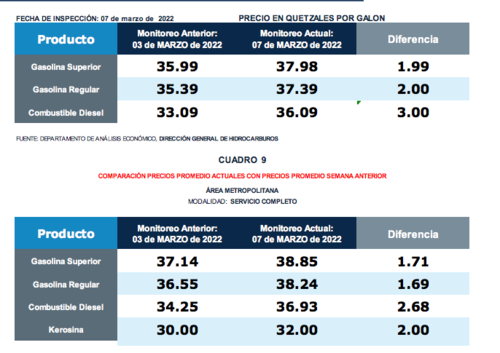 A diferencia de la modalidad anterior, para el caso del servicio completo el precio de galón de superior llegó a los Q38.85, significando un aumento de Q1.71 en comparación con la semana previa.