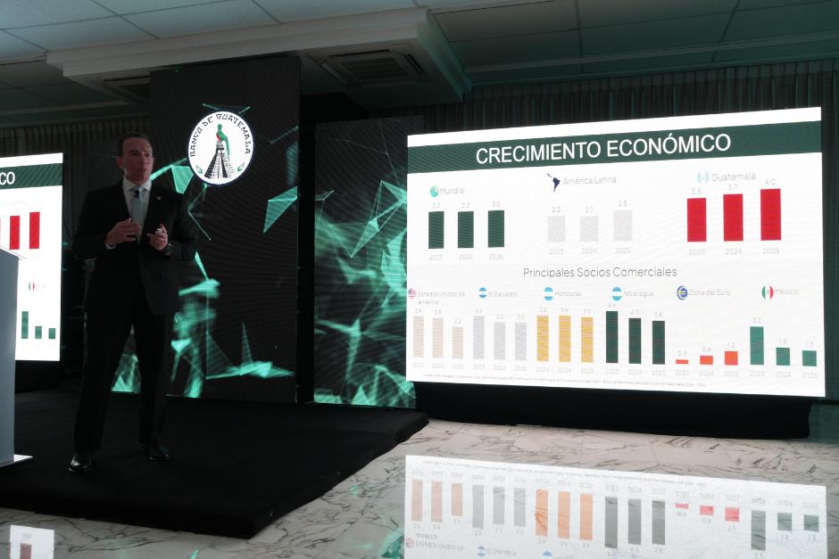 El presidente del Banguat presenta los datos del crecimiento económico en Guatemala y la región. (Foto: Wilder López/Soy502)