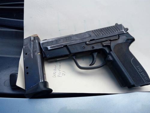 Los capturados viajaban en un vehículo Nissan Sentra de color azul placas P-744FHP. Según el reporte de la Policía Nacional Civil (PNC), se les incautó una pistola SigSauer calibre 40, con una tolva y municiones útiles.