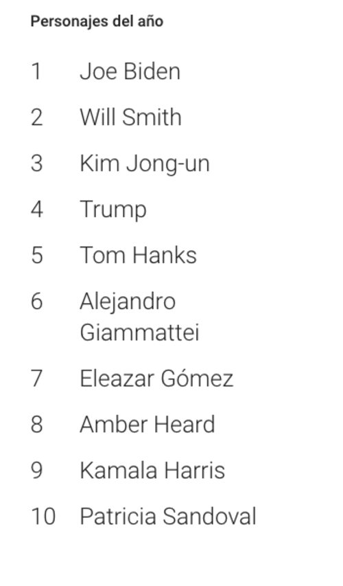 Los cinco personajes del año en búsquedas en Guatemala fueron Joe Biden, Will Smith, Kim Jong-un, Trump y Tom Hanks.