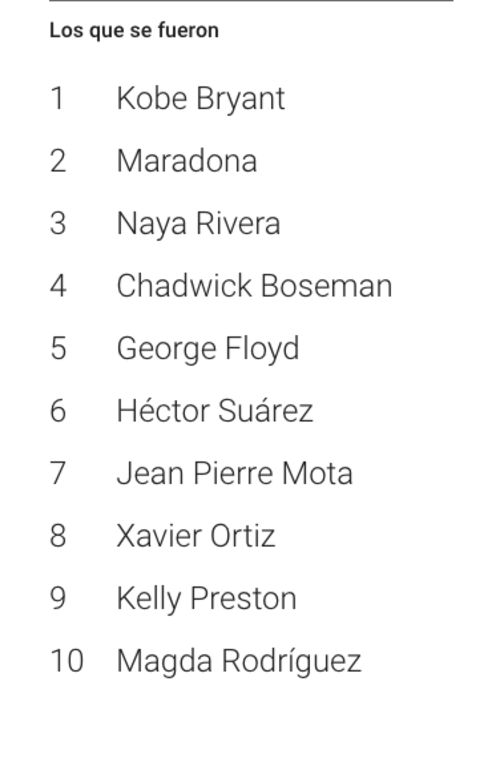 Los que se fueron: Kobe Bryant, Maradona, Naya Rivera, Chadwick Boseman y George Floyd.