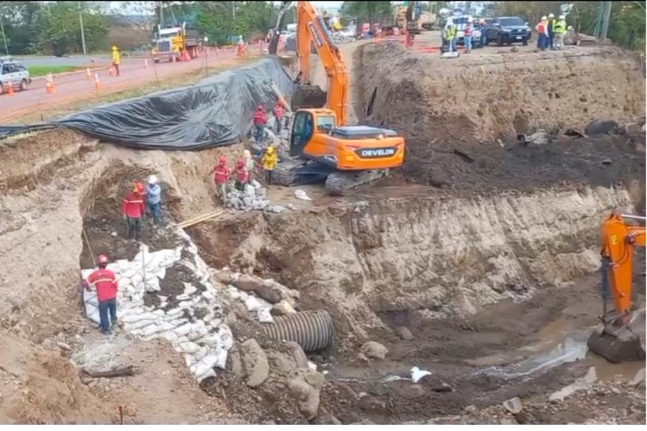 El colapso de una tubería en el kilómetro 63 de la ruta hacia Escuintla ha complicado el tránsito vehicular en el área y los trabajos podrían durar semanas.