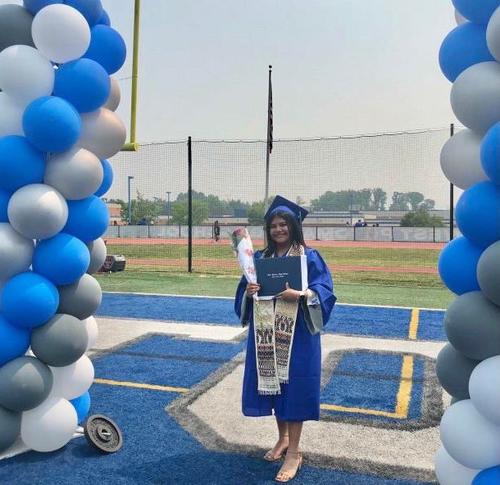 Una estudiante lució una banda bordada a mano con motivos de la indumentaria maya sobre su toga en la ceremonia de graduación de High School (bachillerato) en Estados Unidos, el detalle hecho en Guatemala fue el más comentado.