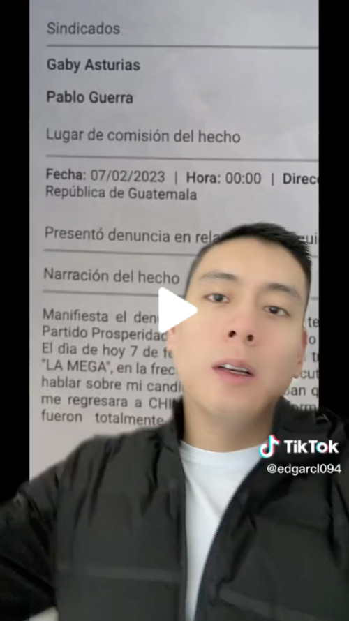 El exdirector del Consejo para la Juventud (Conjuve) durante la presidencia de Jimmy Morales, Edgar Chin y ahora candidato a diputado por el partido Prosperidad Ciudadana, decidió presentar una denuncia en el Ministerio Público (MP) en contra de Pablo Guerra y Gaby Asturias debido a unos comentarios sobre su persona que los denunciados realizaron durante un programa radial la semana pasada.