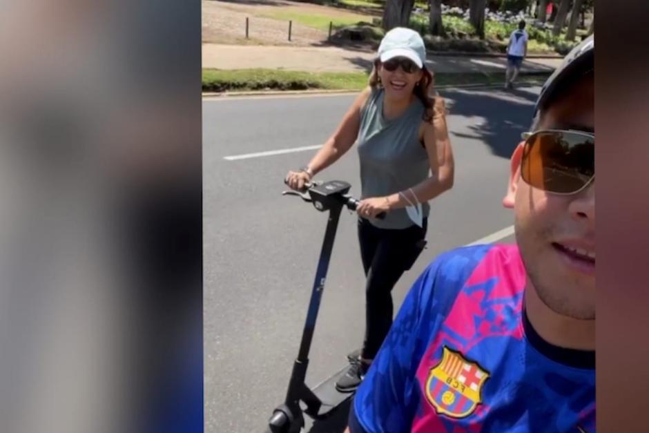 En un video que circula en redes sociales se les ve tranquilos y disfrutando del paseo. "Te vas a caer vos", le dice José Manuel a su mamá cuando pierde el equilibro en el scooter que conduce. Luego retomó la marcha.