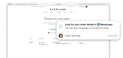 Esto crea un canal de conversación único entre el comerciante y su cliente en Messenger, donde se pueden luego agregar notificaciones una vez que la encomienda fue enviada o información para su seguimiento.