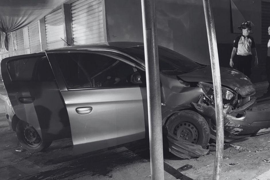 Un accidente de tránsito protagonizado por un vehículo sedan, en la 60 avenida y 6 calle de Pinares del Norte, zona 18.