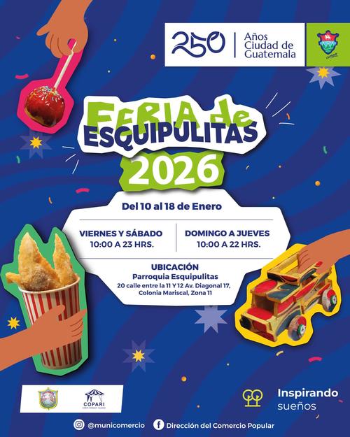 Estará ubicada en la 20 calle, entre 11 y 12 avenida, diagonal 17, colonia Mariscal, zona 11, del sábado 10 al domingo 18 de enero.