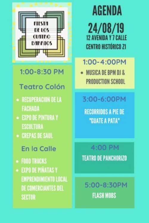 La fiesta se llevará a cabo al aire libre, en la 12 avenida y 7a. calle de la zona 1, el sábado 24 de agosto de 2019, de 1 de la tarde a 9 de la noche. La admisión es gratuita.
