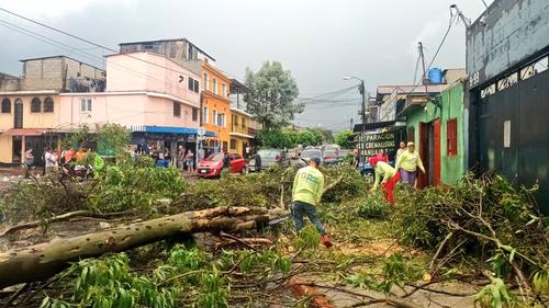 Una vivienda resultó afectada luego de que un árbol cayera sobre ella, debido a las lluvias en un sector de Mixco.