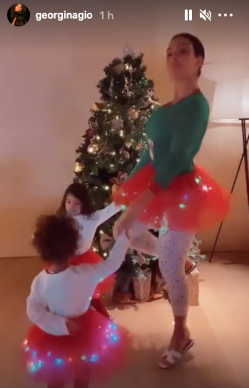 Georgina compartió en sus historias el tierno traje, con falda de tul que ella y sus hijas usaron.