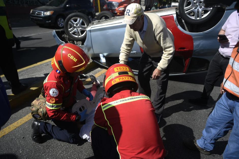 El conductor del carro volcado narró que se dirigía a pagar una multa, cuando se produjo el hecho de tránsito. Una persona resultó herida, pero no fue trasladada hacia un hospital.