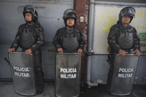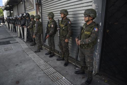 Agentes de la Policía Nacional Civil (PNC) y de la Policía Militar (PM) fueron destacados a este lugar en horas de la tarde del lunes 3 de julio y permanecen en el lugar. Varios de ellos portan armas largas y equipo de protección.