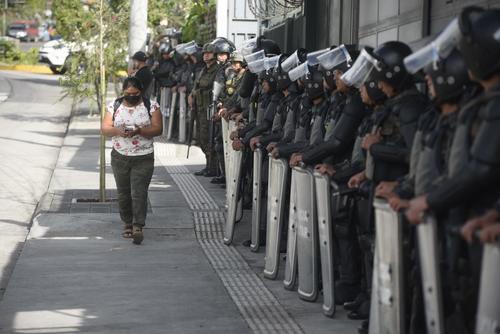 Un fuerte dispositivo de seguridad fue desplegado en los alrededores del Parque de la Industria, zona 9 capitalina, en donde se encuentran las cajas con las papeletas electorales y en donde se realizan las audiencias de revisión de escrutinio, recién ordenadas por la Corte de Constitucionalidad (CC).