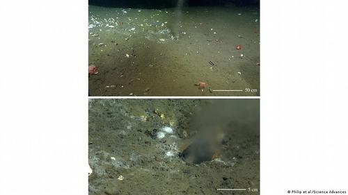 El sonar de un barco reveló una filtración inesperada de penachos de burbujas a tres cuartos de milla debajo de la superficie del océano, lo que llevó a una exploración con un robot submarino que reveló que las burbujas eran solo un componente menor de un fluido caliente y químicamente distinto que brotaba del sedimento del fondo marino, según un comunicado de prensa.