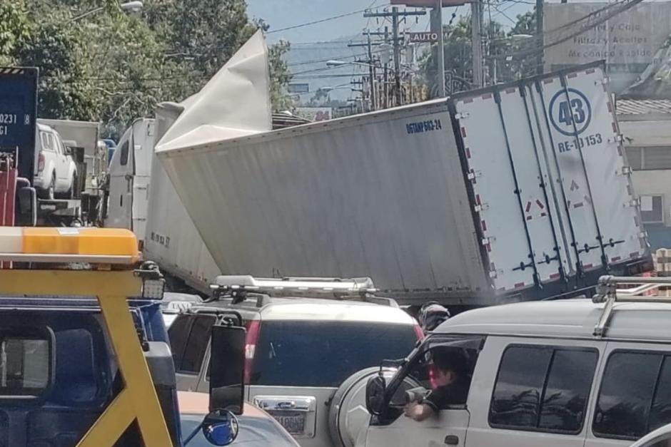 Un furgón de transporte pesado se partió en dos esta tarde en el kilómetro 7 de la ruta al Atlántico, cerca de Centra Norte, zona 17. El incidente ocurrió cuando la carga del vehículo se venció, provocando que el furgón quedara doblado y atravesado en la vía.