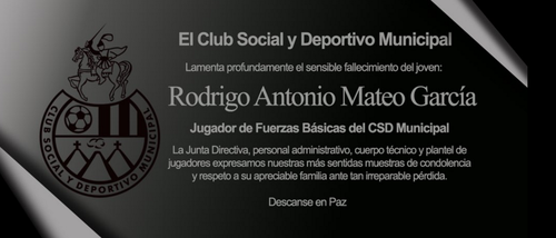 Nuestro mas sentido pésame para la familia de Rodrigo Mateo jugador de San Pedro quien falleció hoy. pic.twitter.com/oUDvJQloup