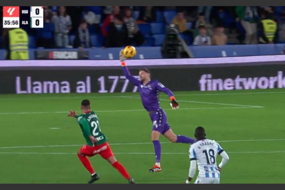 Al minuto 36 del partido, en una jugada de ataque del Alavés, el portero de la Real Sociedad, el español de 28 años, Álex Remiro, decidió salir de su área grande para contrarrestar al delantero.