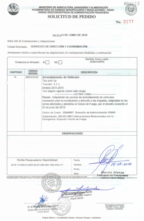 El Ministerio de Agricultura, Ganadería y Alimentación (MAGA) también busca adquirir 18 picops, aunque estos serán arrendados. Según el MAGA, la contratación servirá para movilizar a las brigadas de sanidad agropecuaria.