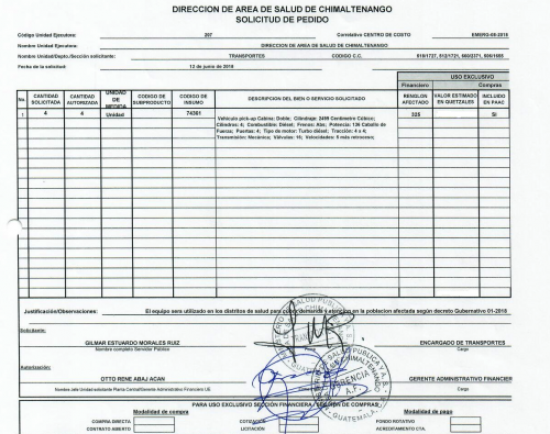 El Área de Salud de Sacatepéquez planifica adquirir cinco picops y el Área de Salud de Chimaltenango otros cuatro. Estas dependencias del Ministerio de Salud buscan que los vehículos sean de doble cabina y con tracción en las cuatro ruedas.