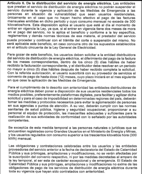 “Se exceptúa de esta medida temporal a las personas naturales o jurídicas que se encuentren registradas como Grandes Usuarios en el Ministerio de Energía y Minas”, dicta el reglamento.