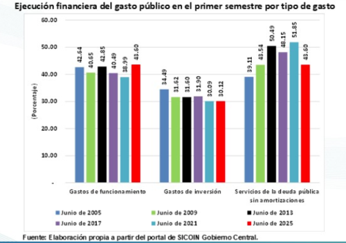 Además, opinó que el aumento en la ejecución presupuestaria este mes se debería al pago del bono 14 en las instituciones del Estado, y no al uso de fondos para la inversión pública.