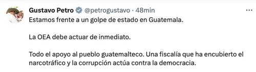 Por su parte, el presidente de Colombia, Gustavo Petro, aseguró que "estamos frente a un golpe de Estado" y llamó a la OEA a adoptar medidas de inmediato.