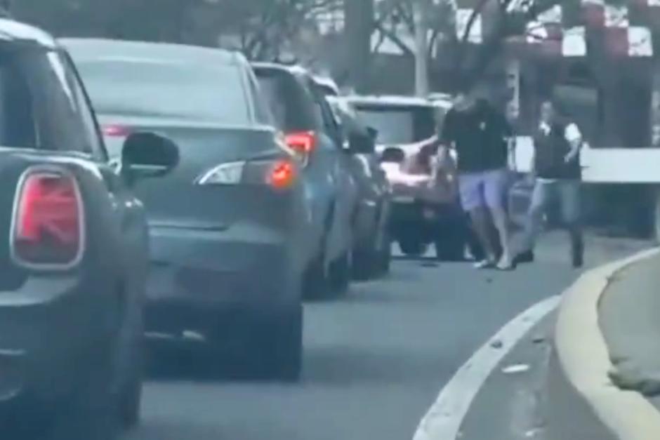 Para frenar la pelea, una pasajera de uno de los involucrados también descendió del automóvil, esto para frenar la riña.