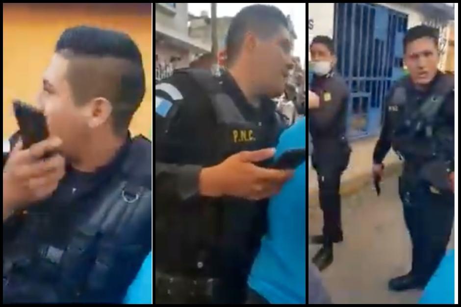 En uno de los videos se observa que un vecinos toma por la cintura al agente, en una acción para alejarlo de la persona capturada. El PNC toma su celular y llama para pedir refuerzos, un hombre intenta quitarle el teléfono y dice: "No dejen que haga la llamada".