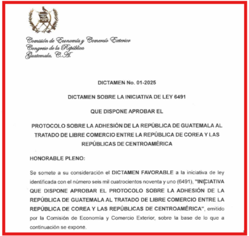 La ratificación del protocolo para la adhesión de Guatemala al Tratado de Libre Comercio (TLC) entre Corea y Centroamérica avanzó este martes 30 de septiembre, en primera lectura, en el Congreso de la República.