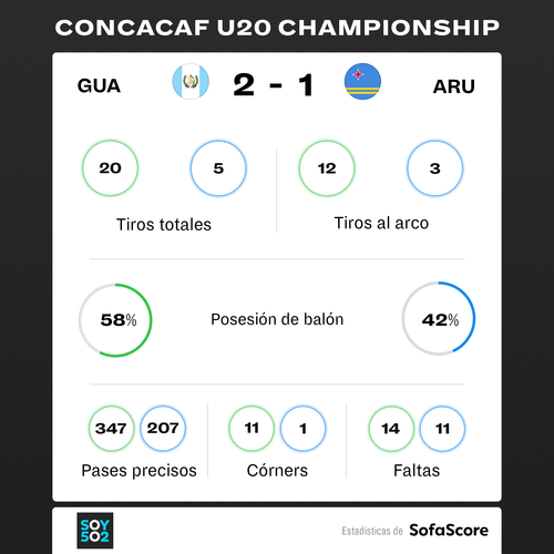 La selección Sub-20 de Guatemala logró una ajustada victoria de 2-1 contra Aruba. Los caribeños fueron los primeros en abrir el marcador, sorprendiendo de nuevo como lo hizo contra El Salvador.