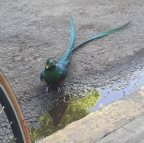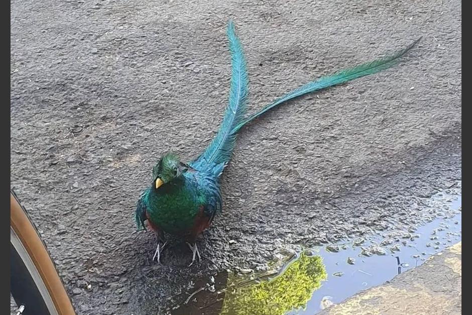 En las últimas horas se ha vuelto viral la fotografía de un ejemplar de quetzal en plena calle, mojado y con aspecto de abandono.