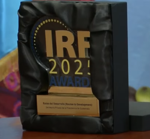 Guatemala fue galardonada por la Federación Internacional de Carreteras (IRF) con el premio en la categoría Caminos Rurales y Movilidad, gracias a la implementación del programa Rutas del Desarrollo, una iniciativa impulsada por el Gobierno para mejorar la conectividad en las zonas más excluidas del país.