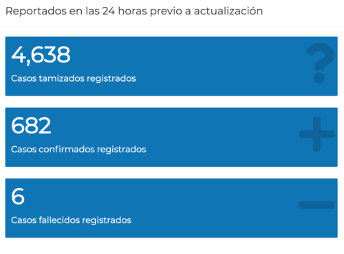 El Ministerio de Salud reportó 682 nuevos contagios de Covid-19 este jueves, según la más reciente actualización del tablero electrónico