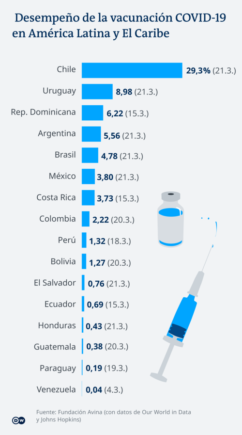 De acuerdo con los datos recopilados por la Fundación Avina, Guatemala solo ha vacunado al 0.38% de su población.