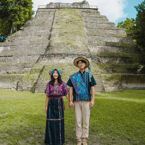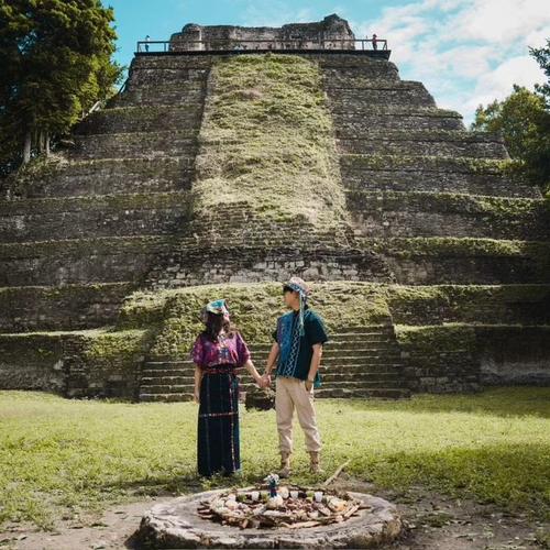 En las fotografías se observa a la feliz pareja vistiendo indumentaria maya, mientras son parte de la ceremonia llevada a cabo en el sitio arqueológico. La unión de ambos en territorio nacional recibió diversas reacciones de guatemaltecos.
