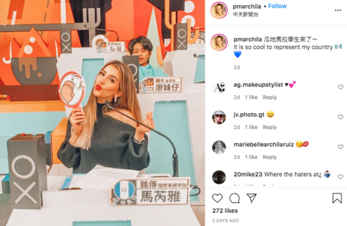 "No fue una elección al azar, me buscaron en las redes sociales hasta que me encontraron. Fue un desafío y me puse nerviosa porque el programa estaba todo en mandarín, pero sí, lo hice. Sigo trabajando duro para mejorar mi mandarín y que un día pueda ser la presentadora de un programa de entrevistas en Taiwán ¡Muchas gracias CTiTV por la oportunidad de filmar los próximos programas!", agregó.