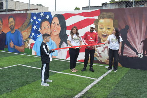 "Con mucho agradecimiento a Dios por haber logrado este sueño, como lo es esta canchita de futbol aquí en mi comunidad, que yo tanto amo. Fue Dios quien lo puso en mi corazón para hacer algo como esto", expresó.