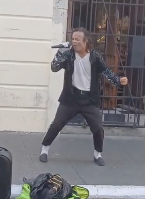 El Gato Jackson se ha ganado el cariño y admiración de decenas de ciudadanos que visitan la Sexta Avenida, el lugar donde se transforma en el artista estadounidense y no pasa desapercibido con sus movimientos.