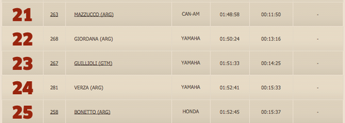 En la primera etapa Rodolfo Guillioli se ubica en el puesto 23 de cuatrimotos con un tiempo de 1:51:33.