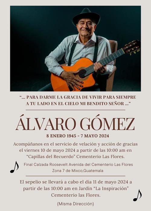 Los restos de Álvaro Gómez serán velados este viernes 10 de mayo a las 10:00 de la mañana, en "Capillas del Recuerdo" Cementerio Las Flores, zona 7 de Mixco.