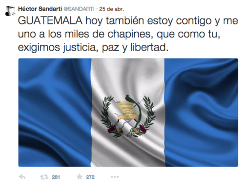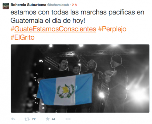 El guatemalteco no está solo, otros artistas nacionales también mostraron su indignación con mensajes positivos de apoyo, a los asistentes a la segunda marcha pacífica #RenunciaYA